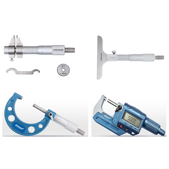 Cylindrical Gages (Pin Gages), Calipers, Micrometers, Rulers, Tapes, Depth Gage, Height Gage, Thickness Gage, Precision Level Meter, Gage Blocks, Dial Indicators, Surface Plate3, Támices, Bore Gages, Láminas de calibración, Microscopios.